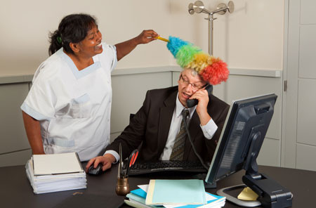 Office Auto Attendant Challenge: A dog trainer has a small rural office and he travels often to different hotels. He trains dogs to find bed bugs for hotel