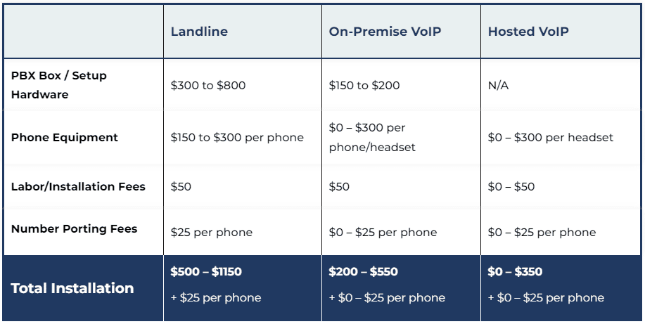 The bottom line: VoIP phone systems can save you a lot of money. Some studies suggest businesses who switch from a landline to a VoIP system can save 70% overall on initial setup and monthly fees. Based on the value assessments we’ve shown here, it’s clear that a VoIP system can save you thousands of dollars every year compared to other solutions. With a VoIP system carefully tailored to your business, you’ll face less maintenance, less hassle, and lower upfront/per month cost.